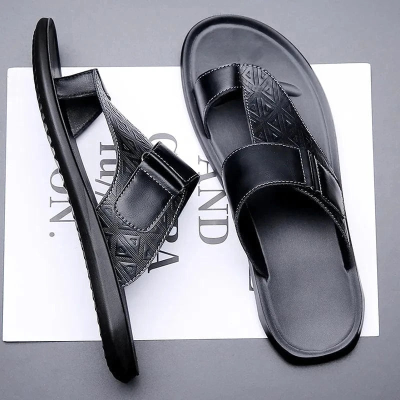 Made from premium genuine leather, each step feels cool, grounded, and undeniably refined. With subtle embossed detailing and a clean silhouette, these sandals bring minimalist elegance to city strolls and slow summer moments alike.