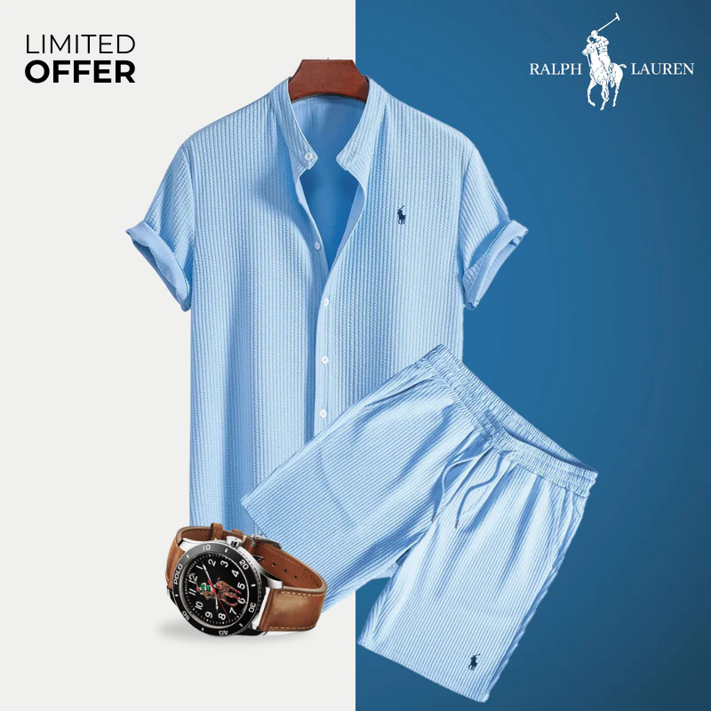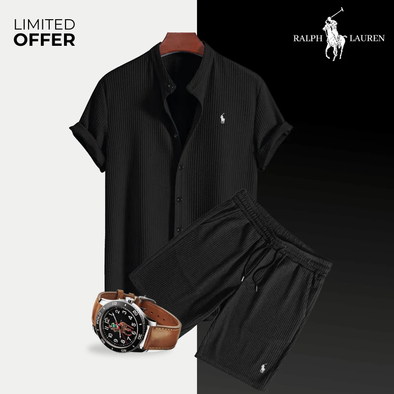 Step Up Your Style Game with the Exclusive R&L Set - Shirt & Shorts + Watch